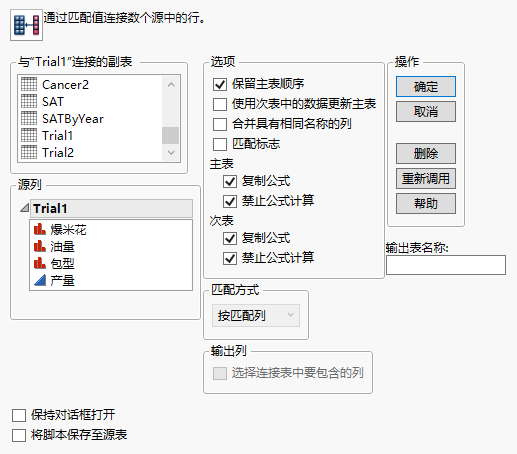 在连接表中保持原始数据表的顺序,而不是按匹配列排序。默认选定该选项。