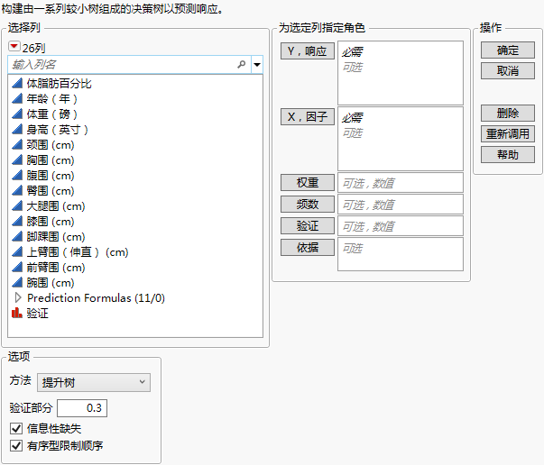 使用 Body Fat.jmp 的“提升树”启动窗口