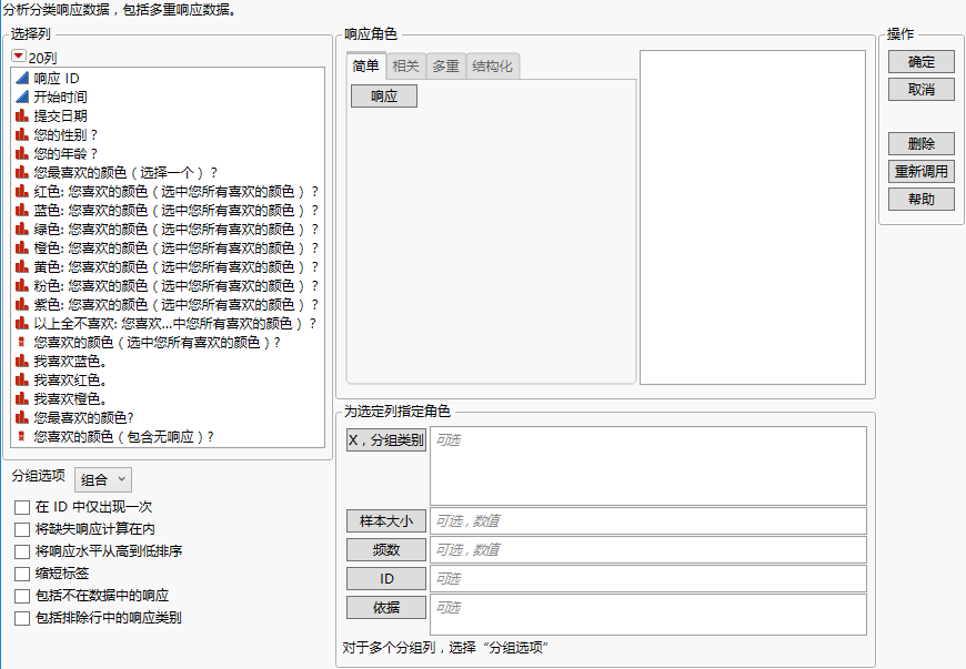 有关“选择列”红色小三角菜单中的选项的详细信息,请参见