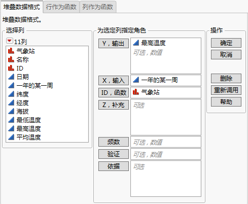 (适用于“堆叠数据格式”和“行作为函数”。)将 ID 变量分配给每个函数。若未在“堆叠数据格式”选项卡中分配 ID 变量,则假定所有观测值只来自一个函数。