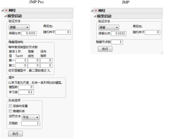 注意:JMP 的标准版本仅使用 TanH 激活函数,只能拟合包含一个隐藏层的神经网络。