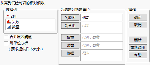 尽管可以在 Pareto 图中对原因进行组合,但这些分析的计算不会相应更改。