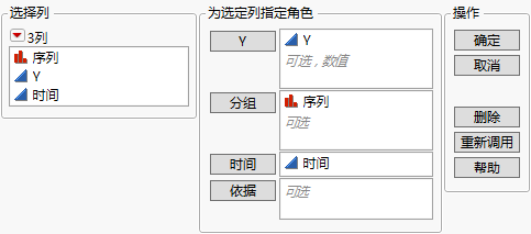将一个或多个列指定为分组变量。当时间序列采用堆叠格式时,可使用分组变量标识各个时间序列。