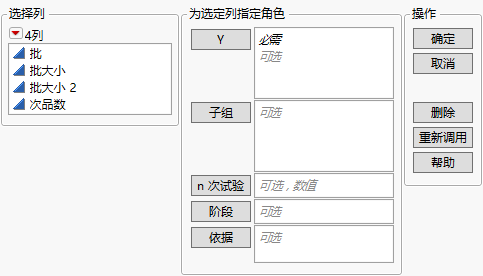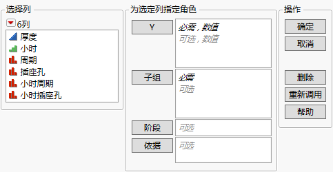 分配子组变量。分配某个子组变量后,控制图中的每个点都与该子组中所有点的某个汇总统计量相对应。