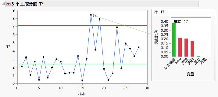 模型驱动的多元控制图用于监控单个控制图中多个过程的参数。“模型驱动的多元控制图”(MDMVCC) 平台支持您基于主成分或偏最小二乘模型生成控制图。对于一组连续变量,MDMVCC 平台使用主成分生成控制图。对于保存的主成分或偏最小二乘得分函数,MDMVCC 平台基于这些值生成控制图。使用 MDMVCC 平台以交互方式探索和理解导致失控信号的底层成分。