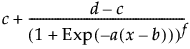 a = 增长率 b = 拐点 c = 渐近线 1 d = 渐近线 2 f = 幂次 |