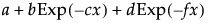 a = 渐近线 b = 尺度 1 c = 衰减率 1 d = 尺度 2 f = 衰减率 2 |