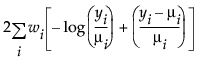 广义线性建模的一个重要方面是模型中解释变量的选择。拟合优度统计量的变化通常用于评估解释变量的子集对特定模型的贡献。将偏差定义为可达到的最大对数似然与回归参数的最大似然估计值处的对数似然的差值的两倍。偏差通常用作拟合优度的测度。使用每个观测对应有参数的模型能够实现可达到的最大对数似然。响应分布的偏差公式 列出响应变量的每个可用分布的偏差公式。