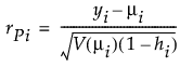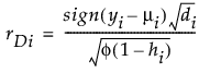 hi 是矩阵 We(1/2)X(X'WeX)-1X'We(1/2) 的第 i 个对角线元素,其中 We 是在计算期望信息矩阵时使用的权重矩阵。