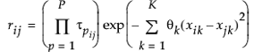 分类变量水平的每一组合都对应一个 τ 参数,其中,τij 对应于对象 i 的观测水平与对象 j 的观测水平所构成的唯一组合。因此,协方差元素 rij 取决于从第 i 个和第 j 个观测获取的分类预测变量水平的组合。请参见 Qian et al.(2012)。