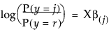 使用 logit 模型的简单扩展来分析名义型响应。对于二值(二水平)响应,logit 响应模型如下所示: