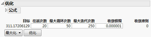 要优化的公式。使用单个响应时,表达式为响应列名称。使用多个响应时,表达式为意愿函数之和。您可以编辑目标表达式。