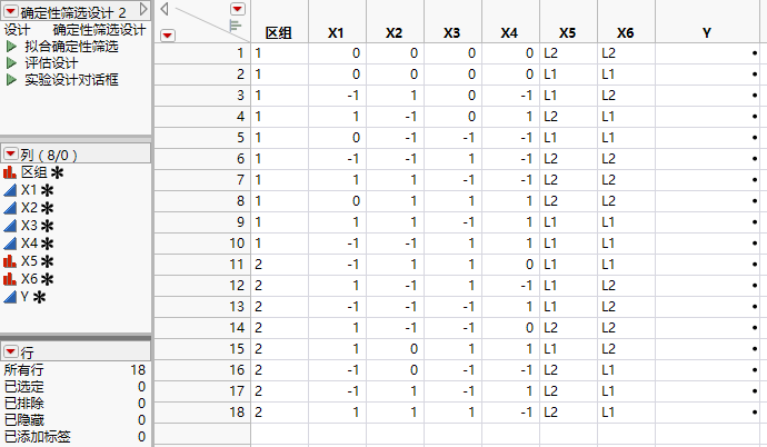 重新创建您用于生成设计表的“确定性筛选设计”窗口。