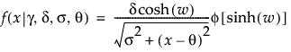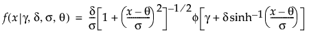 注意:当 g = 0 且 d = 1 时,SHASH 分布等价于位置为 q 且尺度为 s 的正态分布。