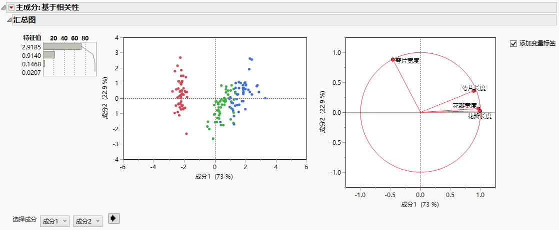 “主成分”平台还支持因子分析。JMP 提供若干类型的正交和斜交因子分析样式的旋转,用来帮助解释提取的成分。有关因子分析的信息,请参见因子分析。