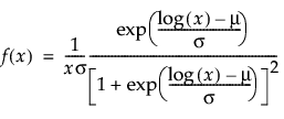 Returns the probability density function (pdf) evaluated at x of a loglogistic distribution with location mu and scale sigma. The pdf is parameterized as follows: