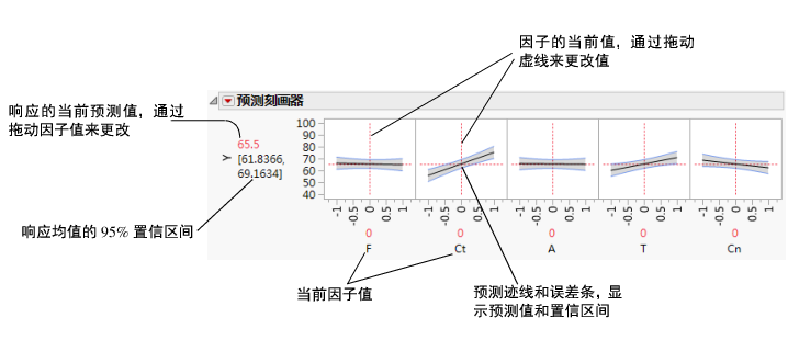 对于每个 X 变量,因子名称上方的值是其当前值。通过在图形中点击或通过将虚线拖至您希望新的当前值所处的位置,您可以更改当前值。