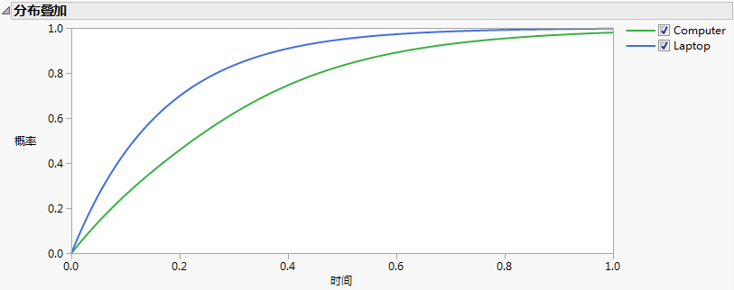 显示设计比较显示设计比较选项显示“分布叠加”图和“剩余寿命分布叠加”图。这些图显示在系统关系图下方的工作区中。请参见“分布叠加”示例 和“剩余寿命分布叠加”示例。