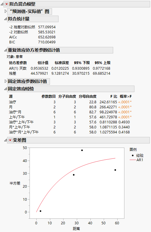 “拟合混合模型”报表 - 具有连续固定效应的“AR(1)”协方差结构
