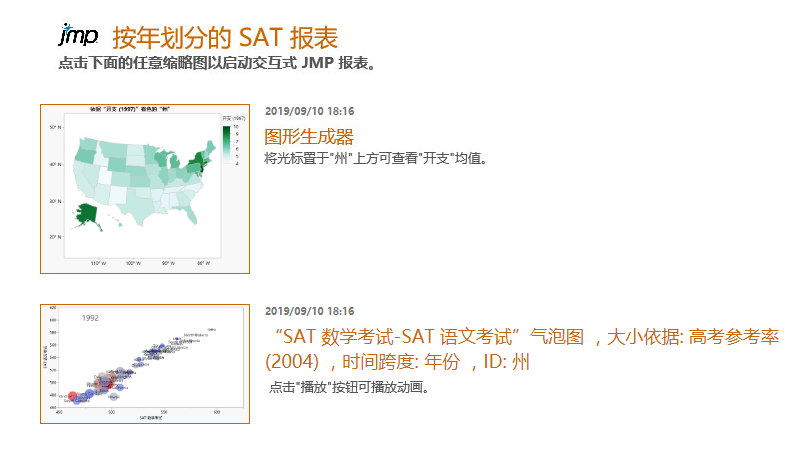 在您根据数据生成结果之后,JMP 提供多种方式供您和他人共享工作。下面是几种您可以共享工作的方式: