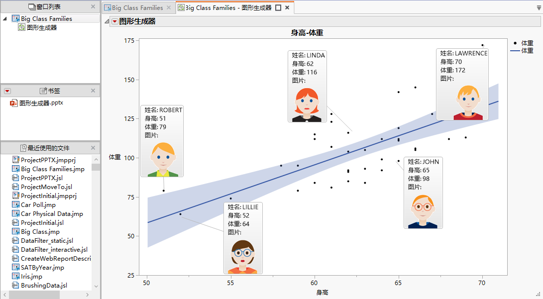 6. 在 JMP 中,点击“书签”红色小三角,选择添加文件,导航至您刚创建的 Graph Builder.pptx文件,然后点击选择。