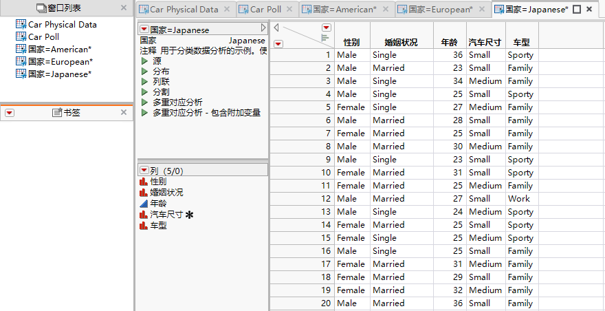 2. 在项目中,选择 Car Poll.jmp 选项卡。
