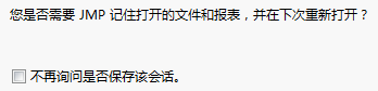 若要在退出时始终保存会话,请选择不再询问是否保存该会话并点击是或否。该选项也可以阻止 JMP 在退出时保存会话。
