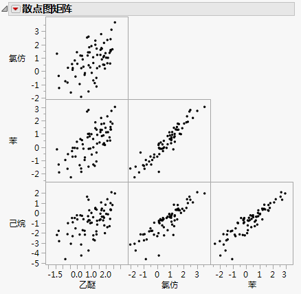 要回答这些问题,使用四种溶剂的散点图矩阵。
