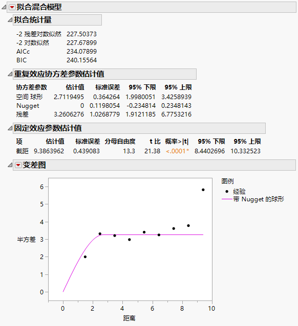 “拟合混合模型”报表 - 带 Nugget 的空间球形
