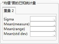 指定某个过程变量后,若点击控制图启动窗口上的指定统计量(若可用)按钮,窗口底部将追加一个选项卡,其中包含可编辑的字段。该选项卡支持您输入过程变量的历史统计量(即,来自历史数据的统计量)。“控制图”平台使用这些条目来构造控制图。下例显示 1 作为过程变量的标准差,20 作为测量值均值。