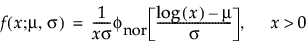 对数正态系列由位置参数 m 和形状参数 s 参数化。对数正态 pdf 和 cdf 如下所示,其中对数的底为 e: