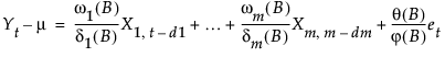 ωk(B) 和 δk(B) 表示单个转换函数的分子和分母因子(或多项式),k 表示从 1 到 m 的各个输入序列的索引。