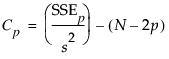 用于选择模型的 Mallow Cp 准则。它是误差平方和的替代测度,可以按以下方式定义: