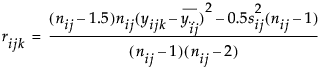 O’Brien 检验构造了一个因变量,使得新变量的组均值等于原始响应的组样本方差。O’Brien 变量的计算公式为: