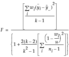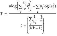 ni 是第 i 个水平的计数,si2 是第 i 个水平的响应样本方差。Bartlett 统计量服从 χ2 分布。将卡方检验统计量除以自由度得到报告的 F 值。