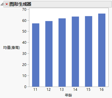 默认情况下,“图表”平台使用 JMP 所支持的常用顺序(月、星期几等)对直条排序。若分组列具有“值顺序”列属性,则列使用该顺序。若无“值顺序”列属性,则按照字母数字顺序绘制直条。