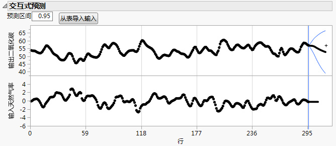 您可以拖动图形中的加号来更改图形中的预测周期数。在预测周期中,您可以使用“从表导入输入”按钮或通过拖动输入图形中的点到不同值来更改输入值。您的更改结果反映在输出图的预测周期中。
