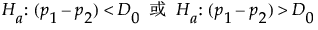 其中 p1 和 p2 是来自两个总体的总体比例,D0 是假设的比例差值。