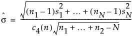 总 sigma 不依赖于子组。JMP 计算 s 的总估计值方法如下: