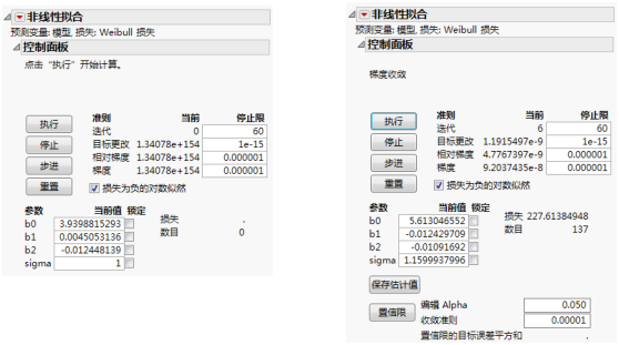 拟合过程收敛情况如具有定制损失函数的非线性模型 中右侧所示。