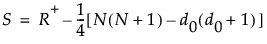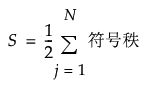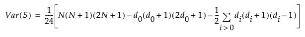 Var(S) 的表达式中最后的求和是在校正结值。符号 di (i > 0) 表示非零符号秩的第 i 组中的值个数。(若给定的符号秩没有结值,则 di = 1 并且被加数为 0。)