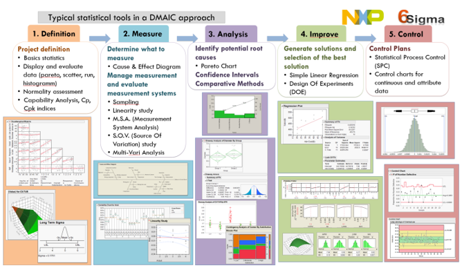 DMAIC 是一种众所周知的结构化问题解决架构,字母 e 是指消除可能成为实际思维模式的根本原因。此项增强源自恩智浦和丰田的一项合作研究,可持续提高质量等级。恩智浦以质量为重,这是公司“全面质量 (Total Quality)”概念的核心所在。