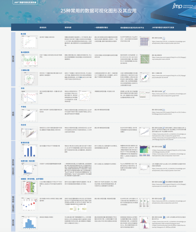 针对这些大家常常问到的问题,JMP的资深数据分析师呕心沥血为大家整理了一份超实用、超完整的数据可视化手册,其中包含: