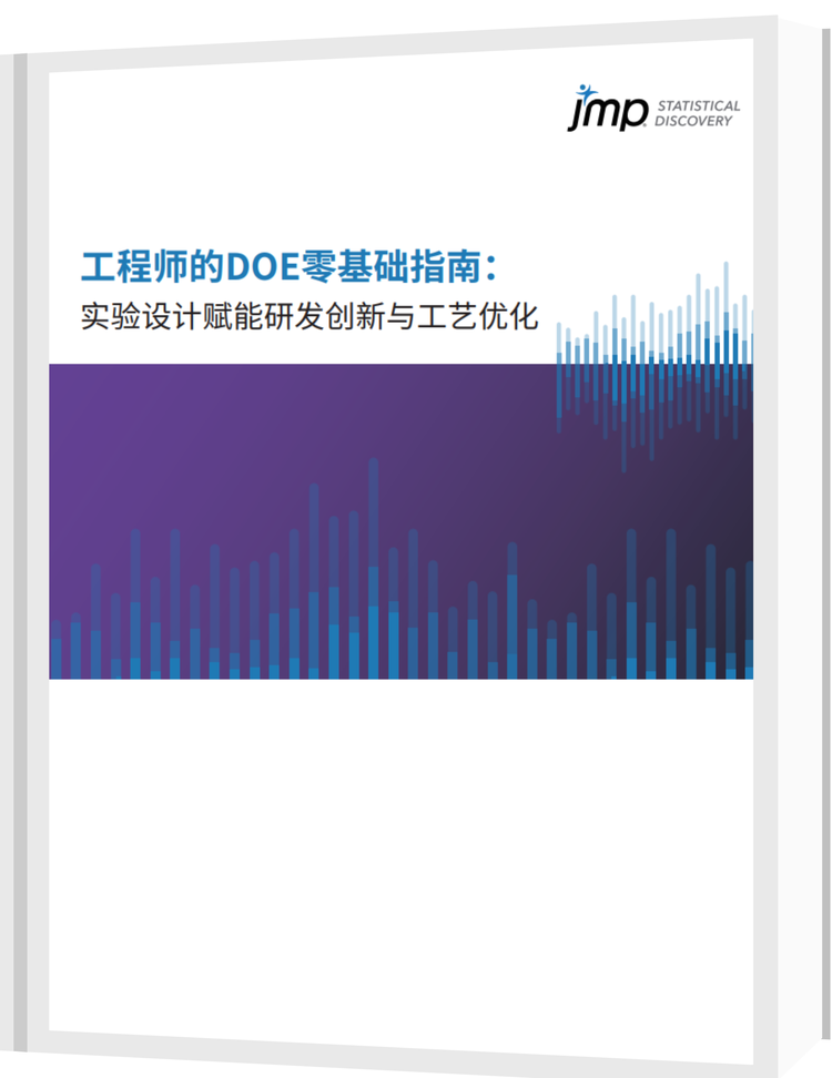 为帮助刚刚入门 DOE、想要了解 DOE 的工程师和分析师们掌握 DOE 必备的核心知识与分析方法,JMP为大家整理了一份超级实用的《工程师的零基础DOE手册》,不仅用通俗易懂的方式为您讲解DOE的基础知识,披沙拣金为您总结了不同DOE方法适配的场景以及选择办法,更搭配有行业实战案例帮助您学以致用,迅速了解日常工作中会用到的 DOE 知识,从而学会灵活地根据需要开展 DOE。