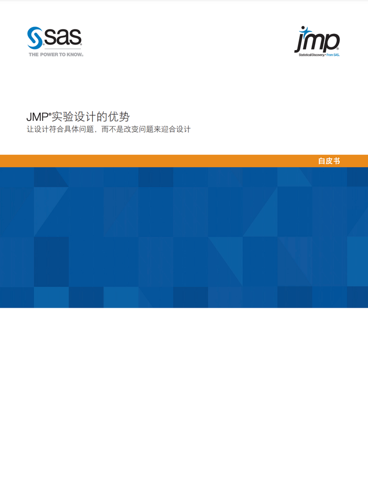成功的企业使用结构化的实验来设计新产品及改进现有流程。JMP软件的独特方法--实验设计(DOE)为您提供竞争优势,帮助您探索和开拓几乎所有现实状况中潜在的机会。