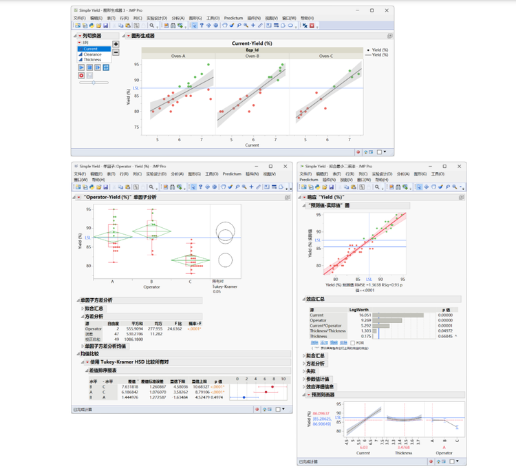 您既可以结合注释信息,解读各过程步骤意图和输出报表结果,也可以借助 JMP 丰富强大的功能在 同等数据源上继续开放式探索。