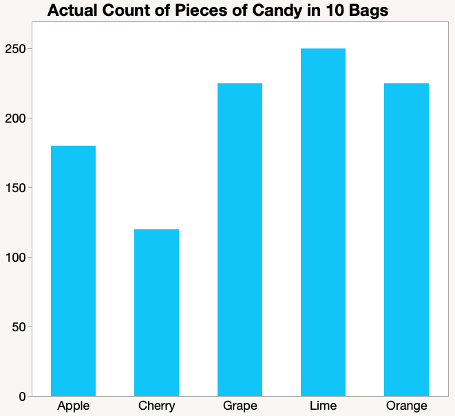 下面的图 1 显示了来自所有 10 包糖果的合并口味计数。