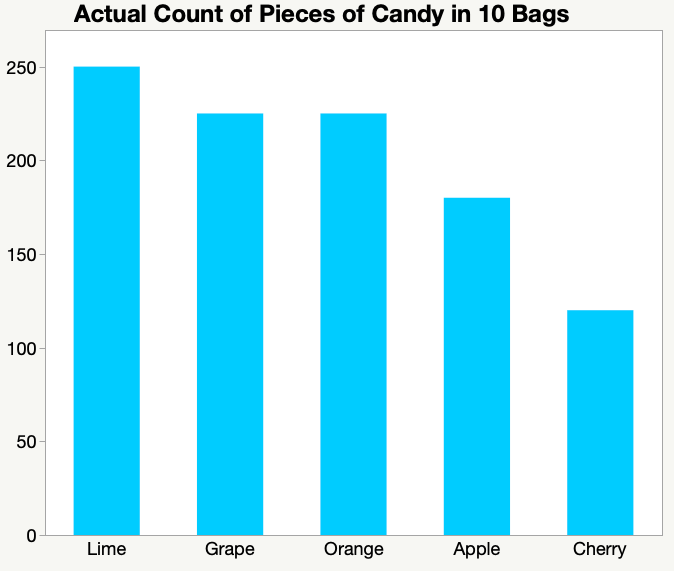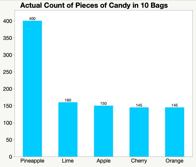 图 3:条形图显示了10包糖果中每种类型糖果计数的条形图