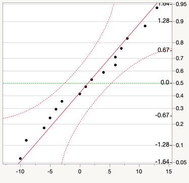 您也可以使用软件来执行标准的正态性检验。下面的图 3 显示了使用 JMP 来检验正态性的结果。检验分数差异的分布。我们无法拒绝正态分布假设。我们可以采用配对 t 检验。