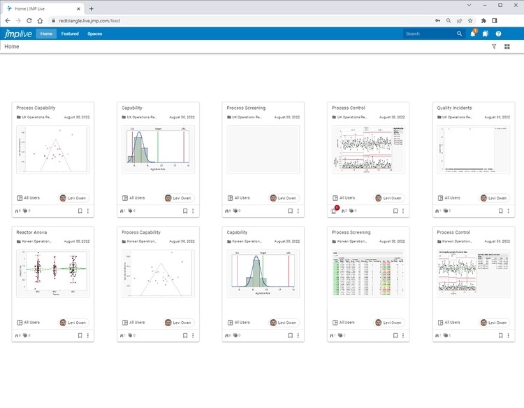 組織中的專家使用 JMP 處理複雜的問題。 為他們提供一個堅實的平台,可以為他們的解決方案提供了可見性,並擴大他們集體發現的影響。 在 JMP Live 中彙總和分享來自多個來源的這些發現,您可以持續訪問專家的見解。